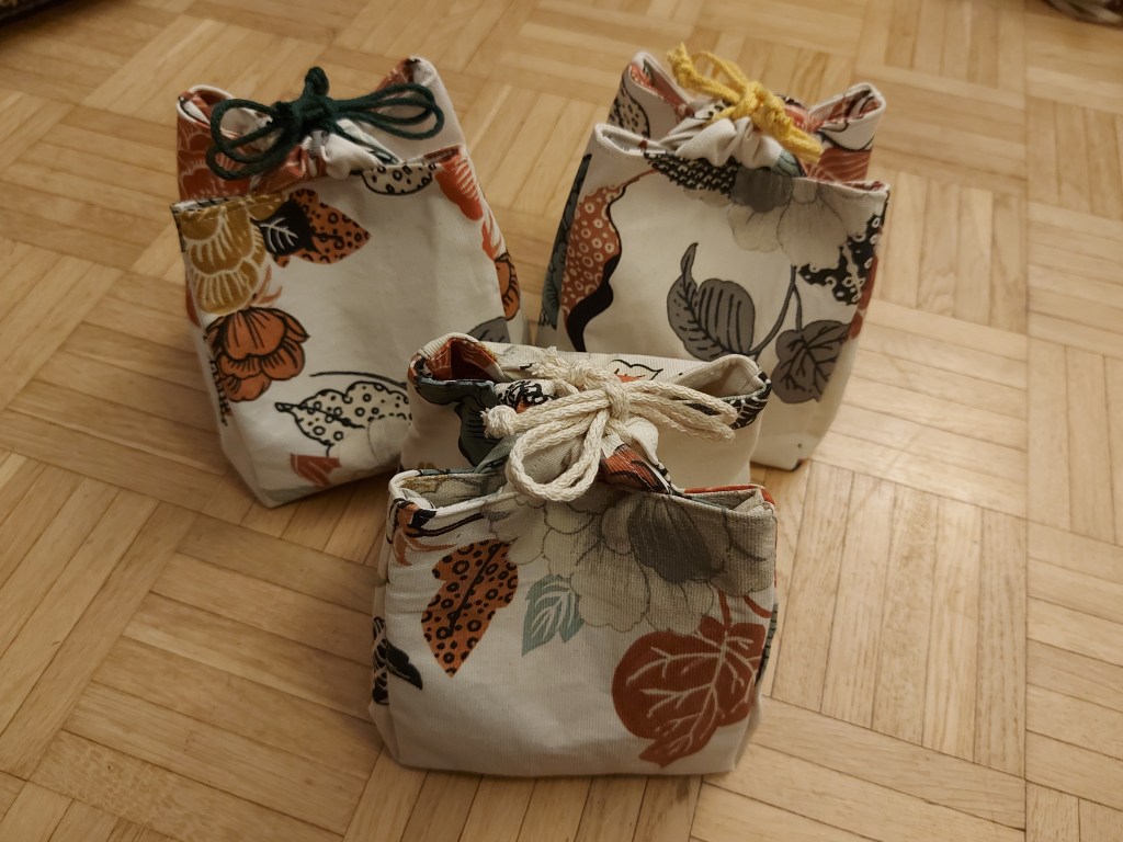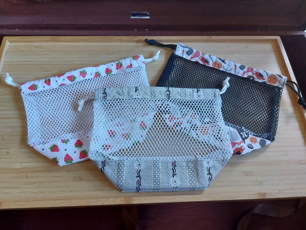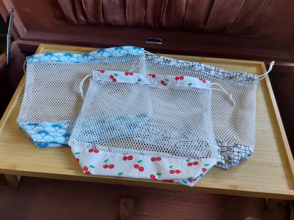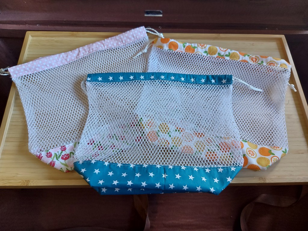 Dann gibt es noch ganz einfache Beutel – nämlich Gemüsebeutel. Ich mag sie gerne, da sie oft wiederverwendet werden können und daher schön umweltfreundlich sind. Ausserdem sind sie ein wunderschöner Farbtupfer in der Küche.