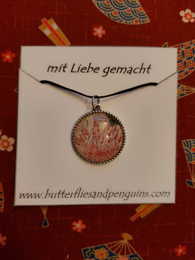 Ich liebe Cabochonanhänger, da sie Briefmarken oder schöne Motive so gut in Szene setzen.