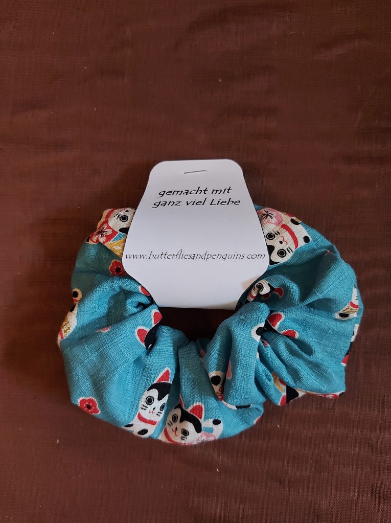 Und Scrunchies. Sie sind so praktisch, man kann nie genug von ihnen haben – und sehen gerade aus japanischen Stoffen so süss aus.