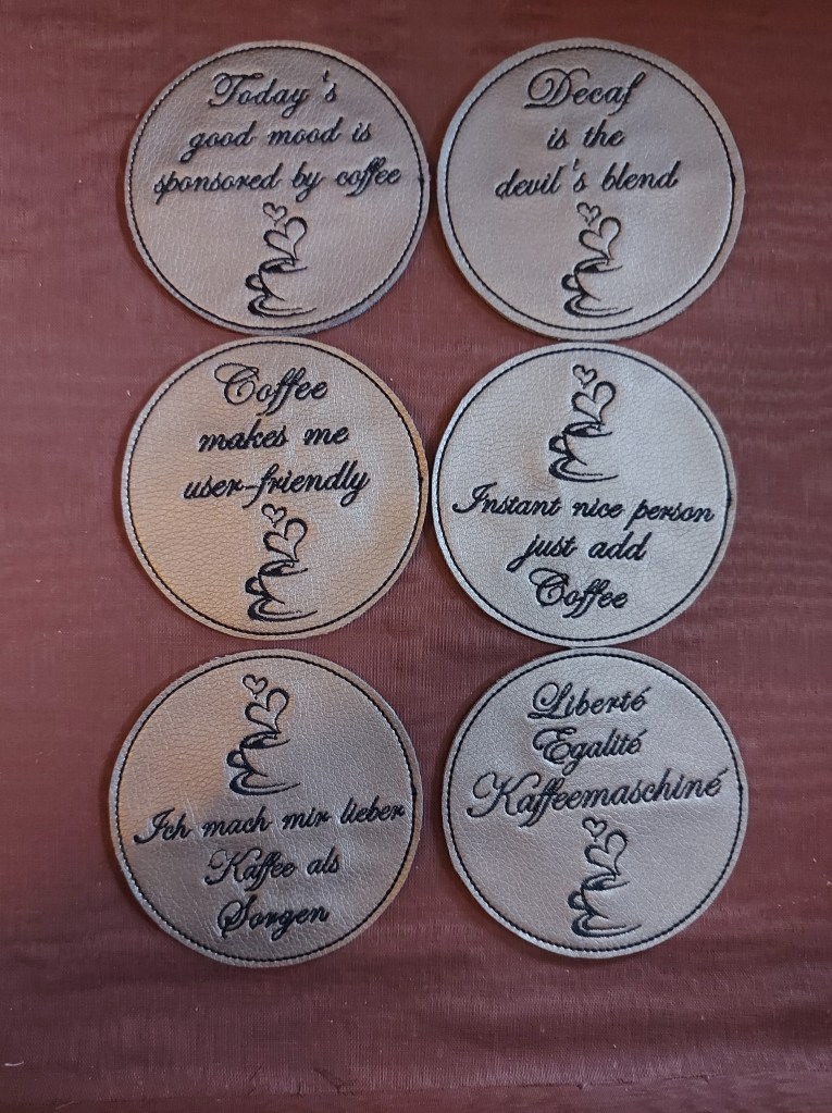 Als Farbtupfer für den Esstisch gibt es auch Untersetzer. Diese sind aus Kunstleder und mit diversen Motiven bestickt. Ob für den Kaffeeklatsch oder einen fantastischen Abend – es gibt für viele Gelegenheiten genau das passende Motiv.